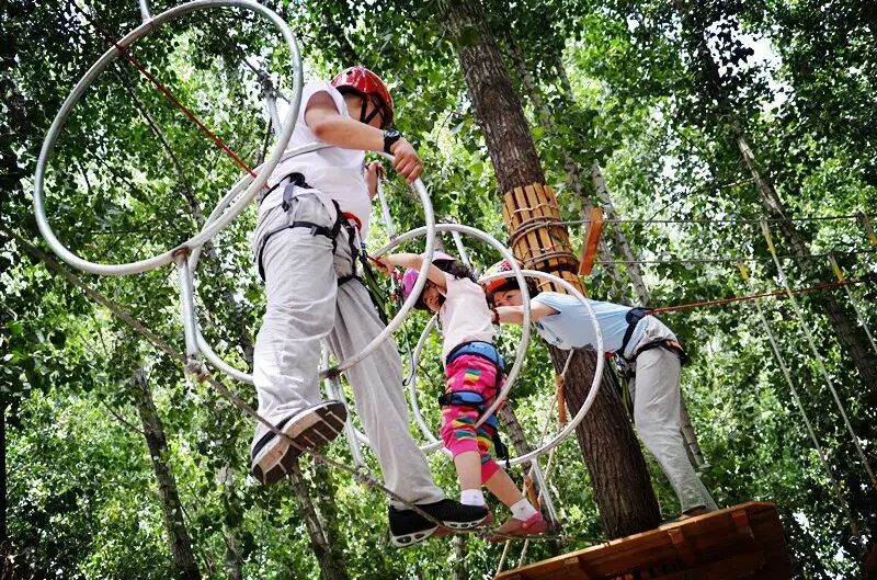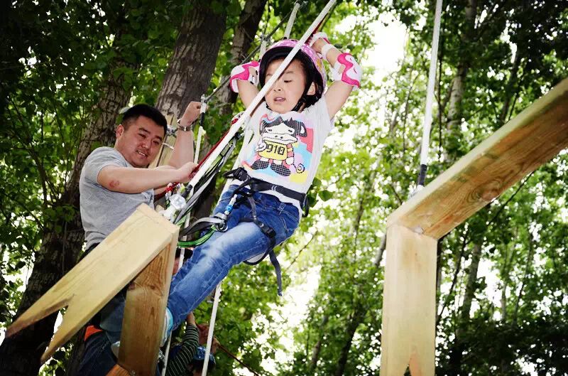 树上探险智勇闯关有三种路线,分别是家庭森林线路、青少年冒险线路、勇士挑战线路,此项目三种路线均在“树上”完成。此项目是利用树与树之间的距离,搭建吊绳、木板等,实现可以行走、闯关的路线,以此来增加项目的趣味性。爸爸妈妈们不妨带上自己的小宝贝来挑战树上亲子路线,感受树上闯关的乐趣。